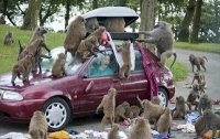 Как правило, нахальные обезьяны вырывают дворники и зеркала заднего вида в то время, как ничего не подозревающие туристы прогуливаются по парку. В ином случае они вынуждены безропотно наблюдать за тем, как исчезают их вещи.