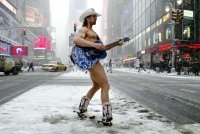 Знаменитый нью-йоркский «Голый ковбой» требует от женщины в бикини, которая называет себя «Голой ковбойкой», перестать воровать его торговую марку. Кейн "работает" на той же территории что и Берк, в том же образе "голой ковбойши".