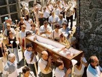 Более того, в день фестиваля устраивается процессии, в рамках которой «виновников торжества» проносят в гробах члены их семей и друзья. Нередко можно увидеть, как участники шествия сами несут гроб.