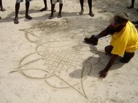 Рисование на песке представляет собой искусство изображения симметричных геометрических узоров. При этом используется только один из пальцев. Для того, чтобы создать узор, состоящий из сложных мотивов и ровных окружностей, необходимо обладать не только отработанными навыками, но и устойчивостью руки.