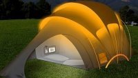 На музыкальном фестивале Гластонбери была представлена светящаяся в темноте футуристическая палатка, в которой можно получить доступ в интернет. Изобретение принадлежит телекоммуникационной компании «Orange». Палатка работает на энергии солнца, которая, в свою очередь, позволяет обеспечить отопление, освещение, связь и подзарядку приборов. Палатка оборудована беспроводным интернетом. В ней можно заряжать портативные устройства, такие, как, например, iPod. Технологии связи третьего поколения, позволяют пользователям настраивать свечение палатки, всего лишь отправив SMS-сообщение на определенный номер. После его отправления, палатка начинает светиться изнутри.