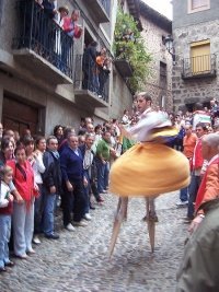 Примечательно, что для некоторых участников празднества торжества проходят на высоте полутора метров надо землей: это касается только танцоров на ходулях. Считается, что традиция устраивать подобные «пляски» берет корни еще в XV веке. Происхождение традиции доподлинно неизвестно. однако предполагают, что она возникла в далеком прошлом когда пастухи переходили наводненные улицы на ходулях, держа в руках образ святой.